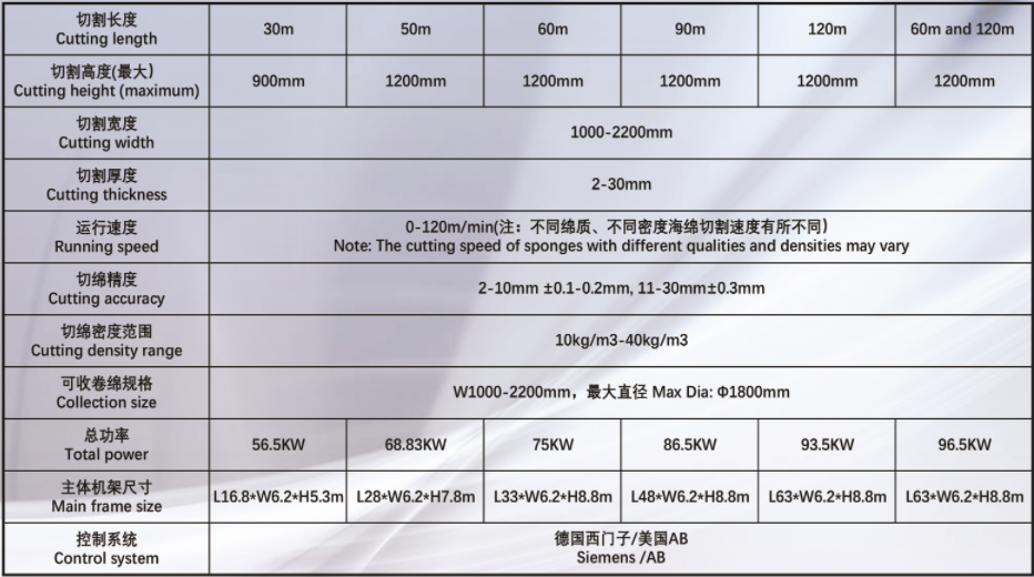 | 加工泡綿尺寸 | 長度:49-100m,寬度:1-2.2m,高度1.3m |
